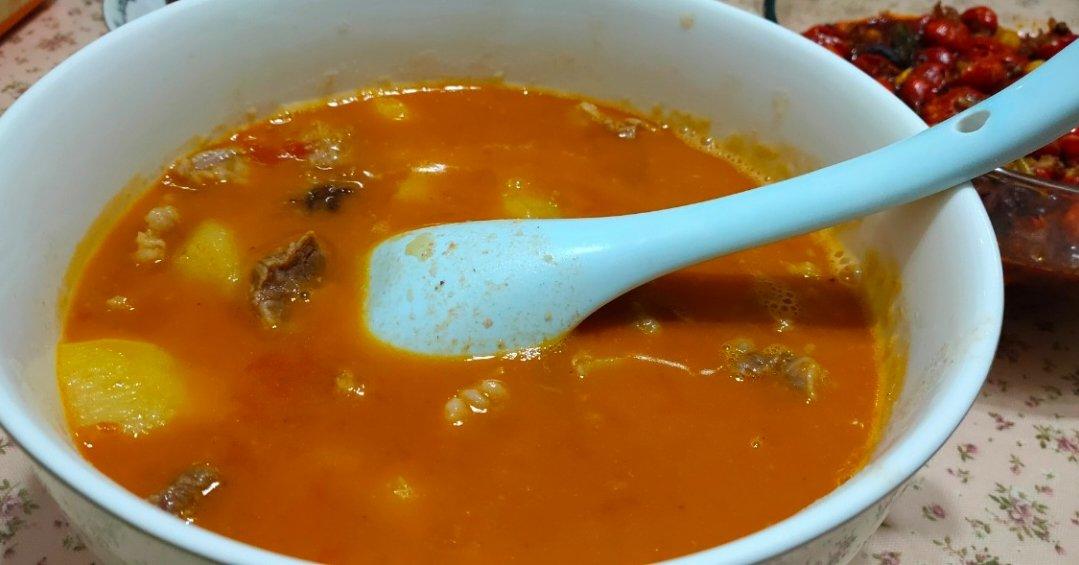 汤好喝的,就是牛肉买的太柴了,用我的小电锅炖了三个小时也一般般烂