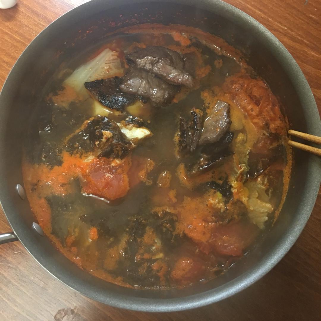 照出来怎么有点恶心😂其实很好喝的番茄鸡蛋泡菜白菜紫菜烤牛肉汤😂😂