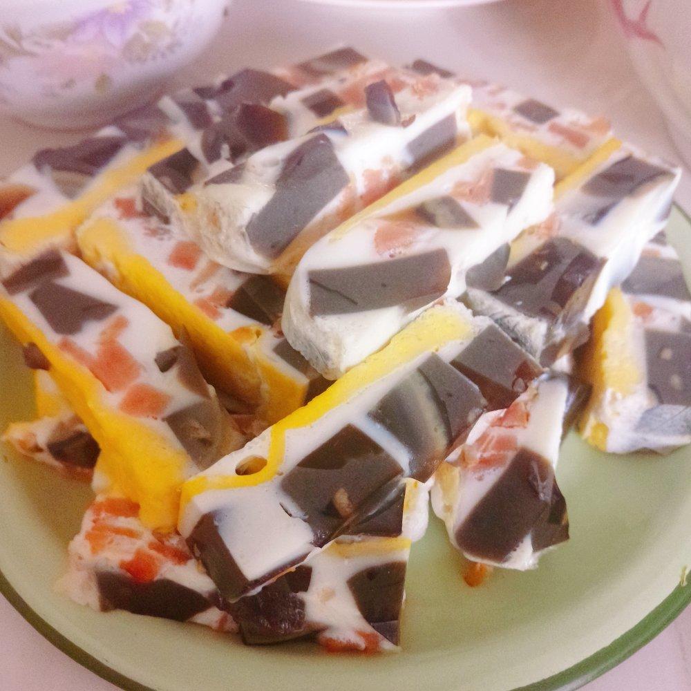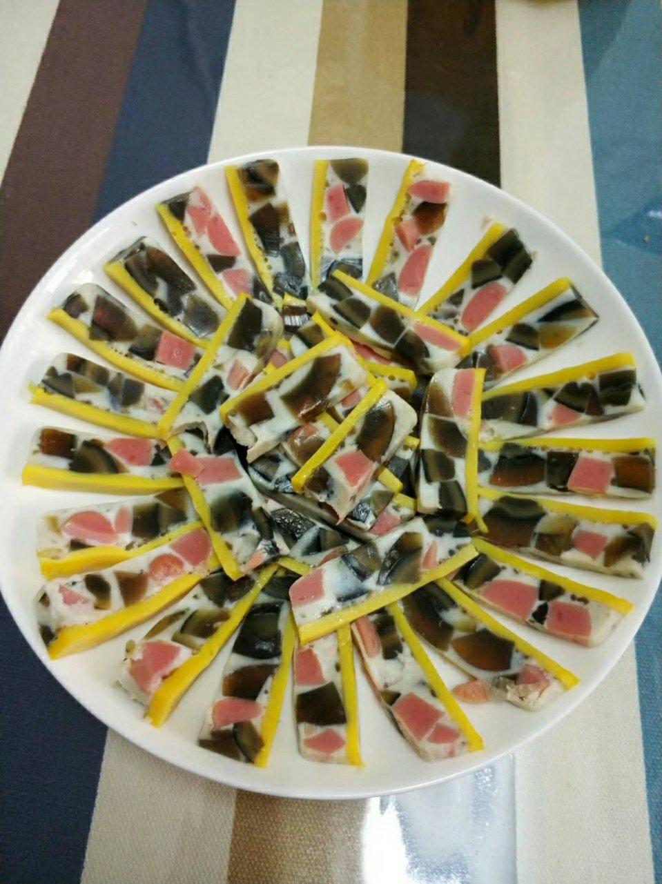 今天第一次吃皮蛋肠,很新奇,味道也不错。很适合夏天吃,或者当个下酒菜。