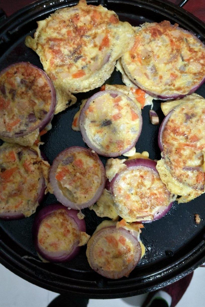 洋葱鸡蛋饼+豆腐番茄+皮蛋肠