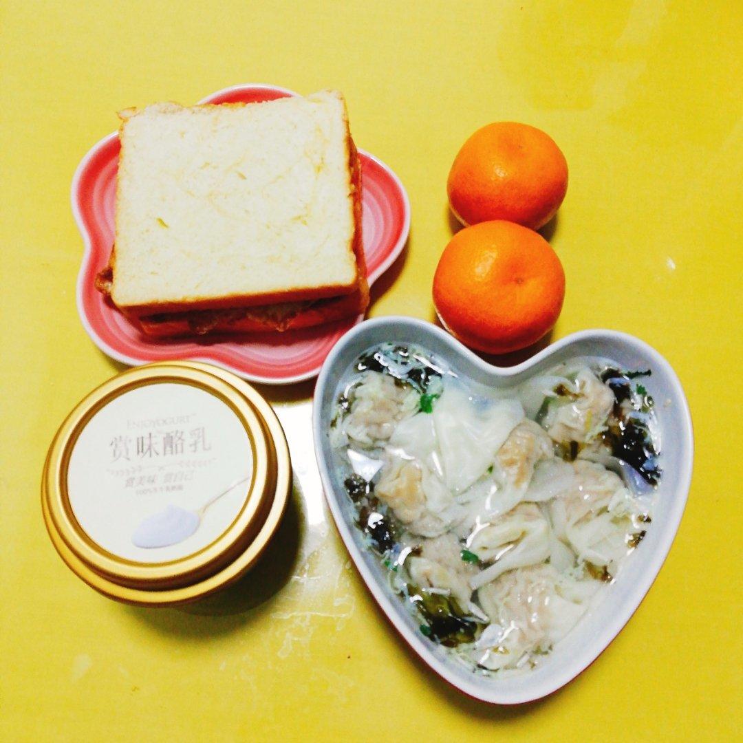 三明治+鲜肉馄饨+酸奶+桔子