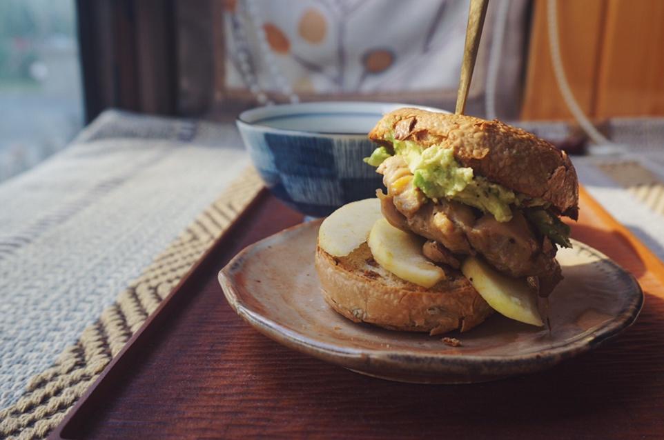 本来是想吃牛油果鸡腿贝果三明治的,结果咬了一口,默默把鸡腿肉踢出去了继续吃¯\_(ツ)_/¯最...