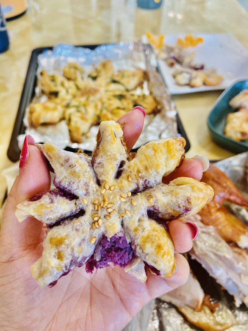 用了点紫薯粉调在芋泥里,色和味都是我喜欢的😍,这个味道好好,口感也是软软糯糯,孩子也很喜欢吃!