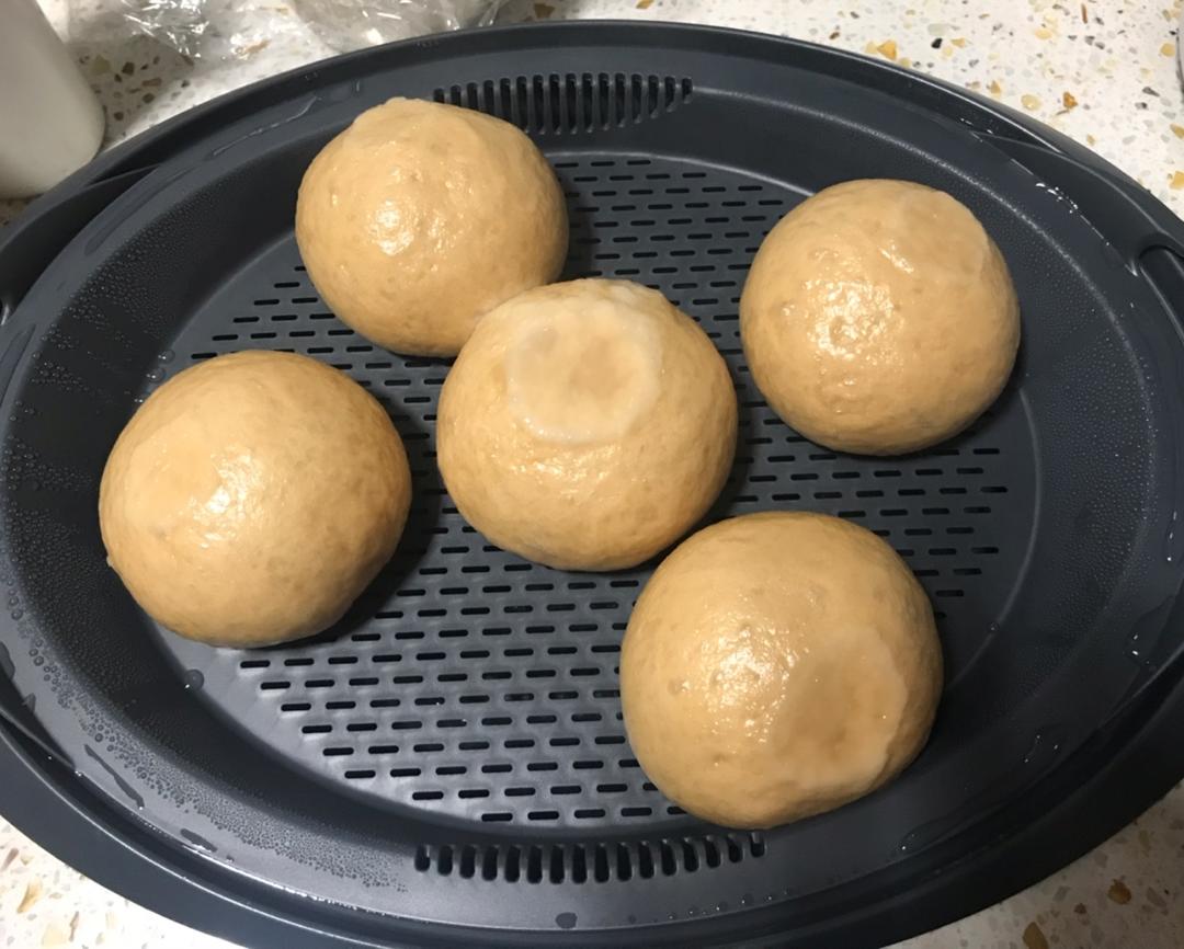 红糖馒头。中间那个顶着锅盖遇水汽了,好可惜。