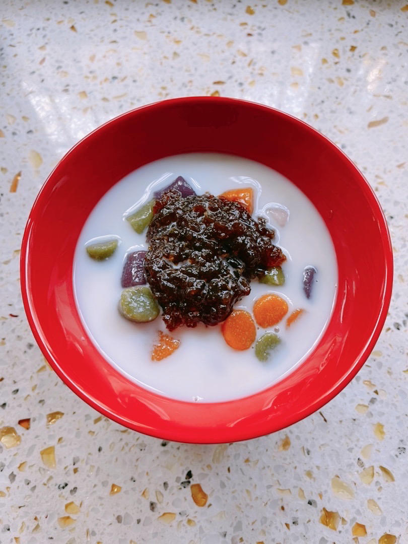 超市买的芋圆,煮出来很Q弹,和龟苓膏椰汁一混合就能够做出X芋仙啦。