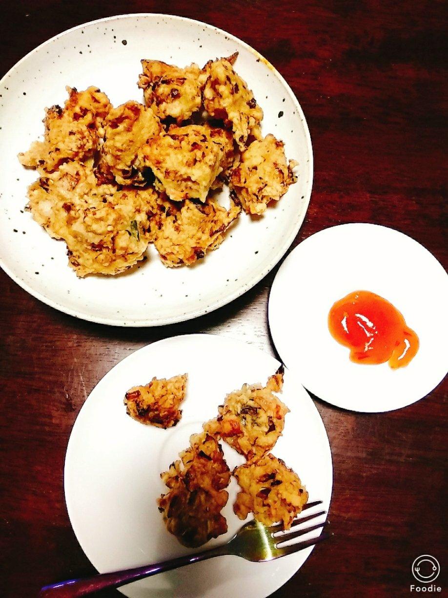 卷心菜、胡萝卜丝、洋葱把冰箱里仅存的三种蔬菜切丝+鸡蛋面粉,给女儿炸个丸子吃