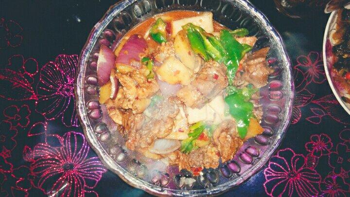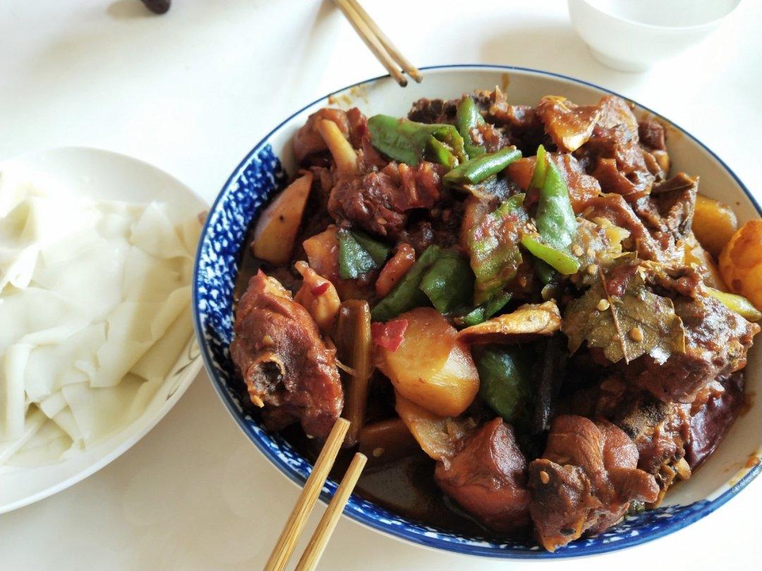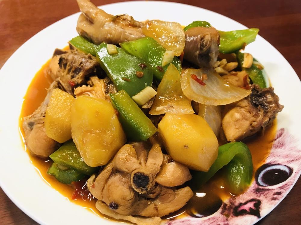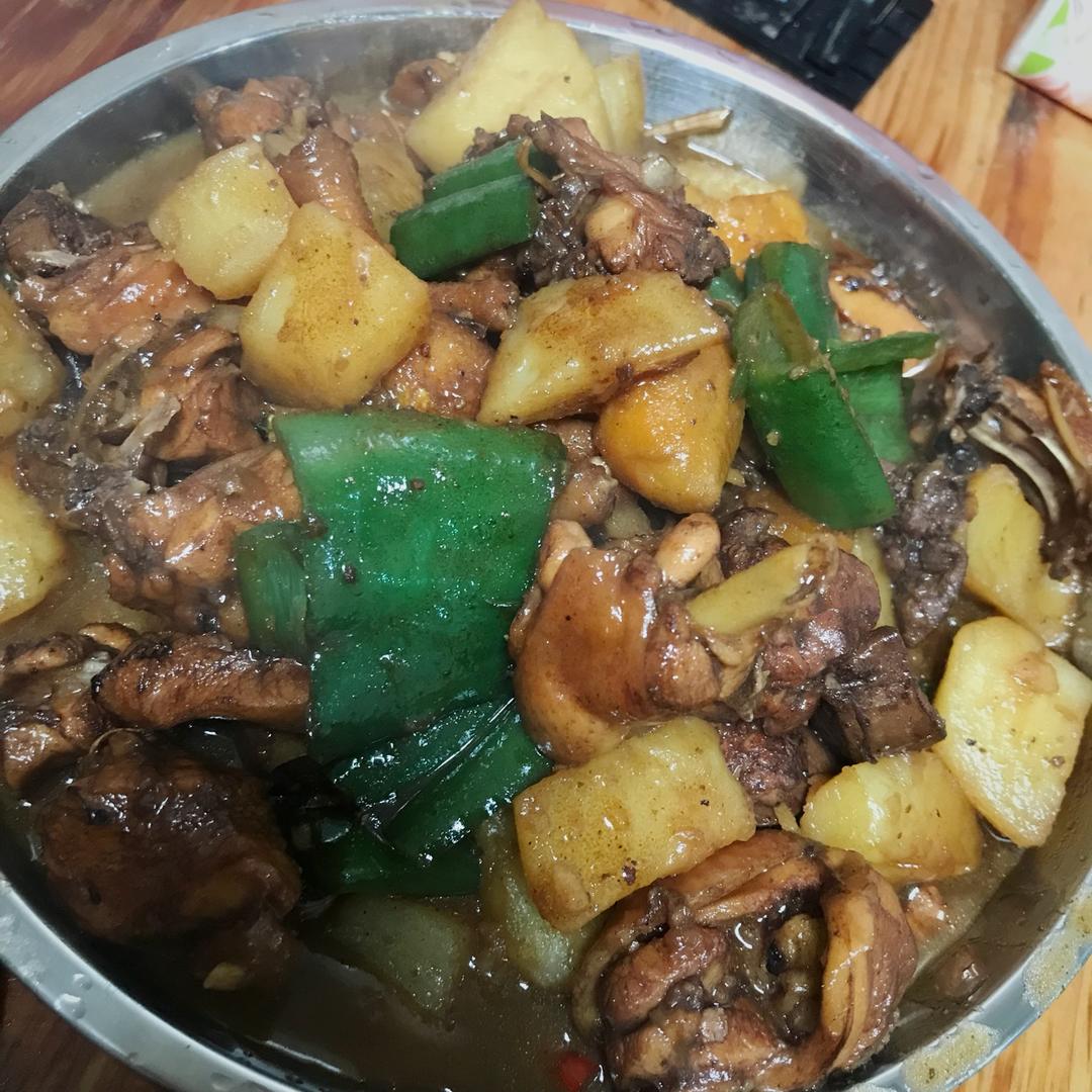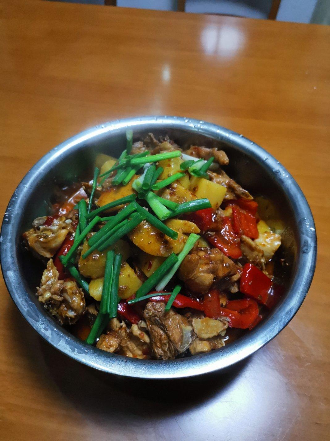 第一次做大盘鸡,刚开始还把糖烧糊了(刷锅重新来过),鸡腿也忘记剁,然后啤酒也放多了有点苦(又加了点水和糖),好在最后出来...