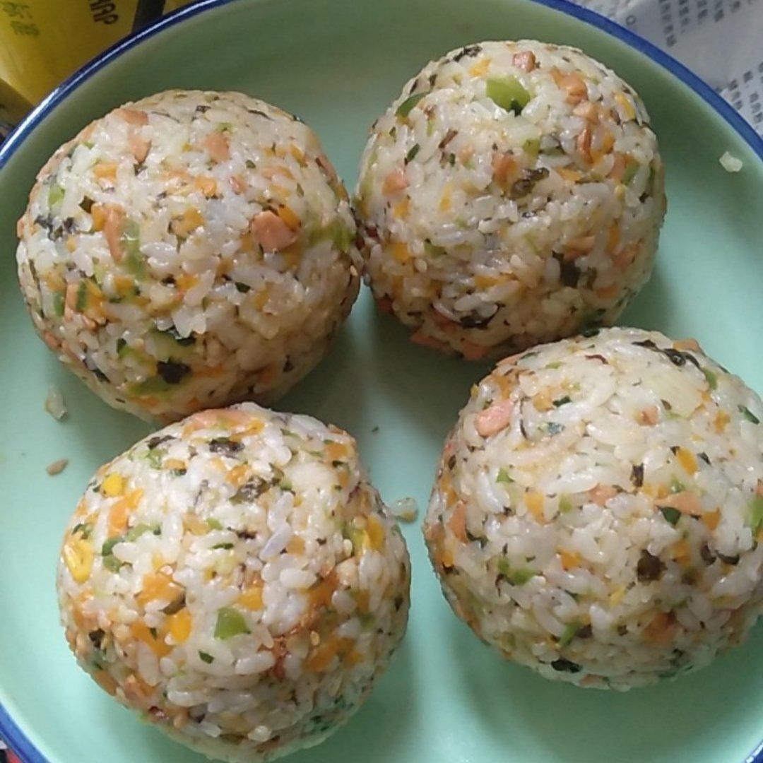中午小朋友吃得少。这会吵着要吃瓠子饼。想着中午多蒸的米饭🍚,还有一直想尝试的这个饭团,就开始做啦!挺成功的!除了菜谱里的...