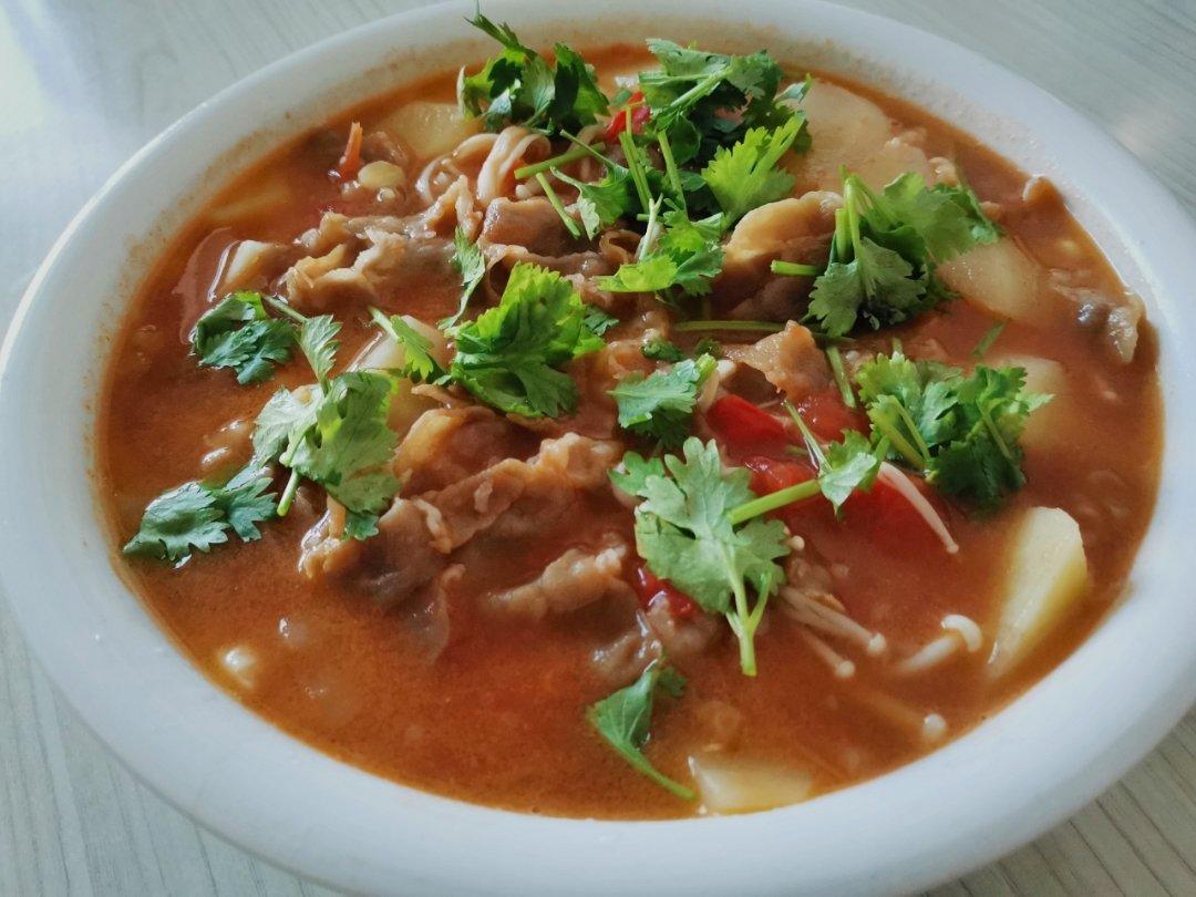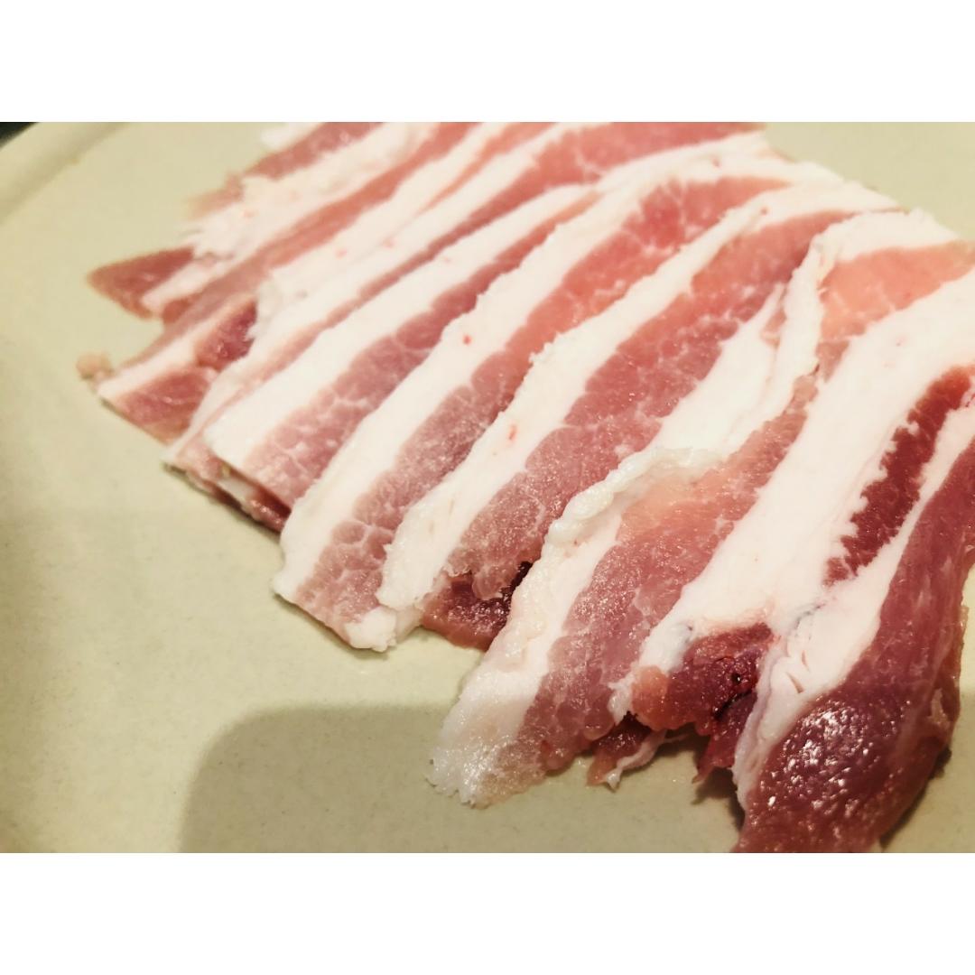 切上两盘薄薄的五花肉,
