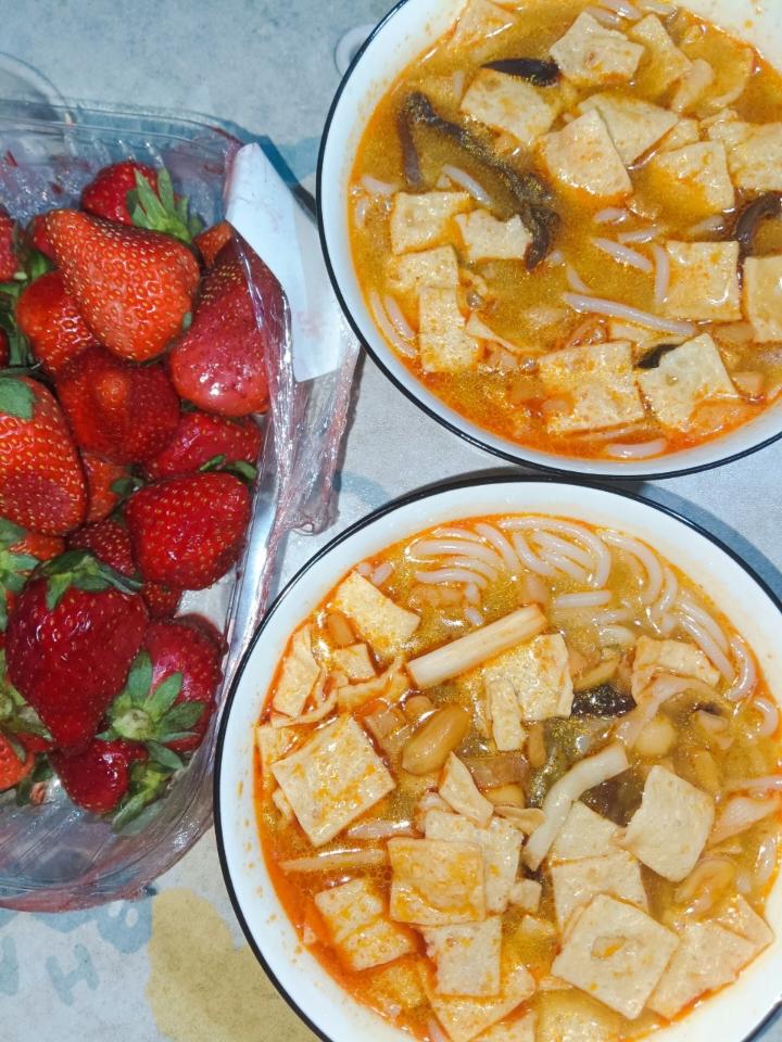 今日晚餐~螺蛳粉➕草莓➕可乐