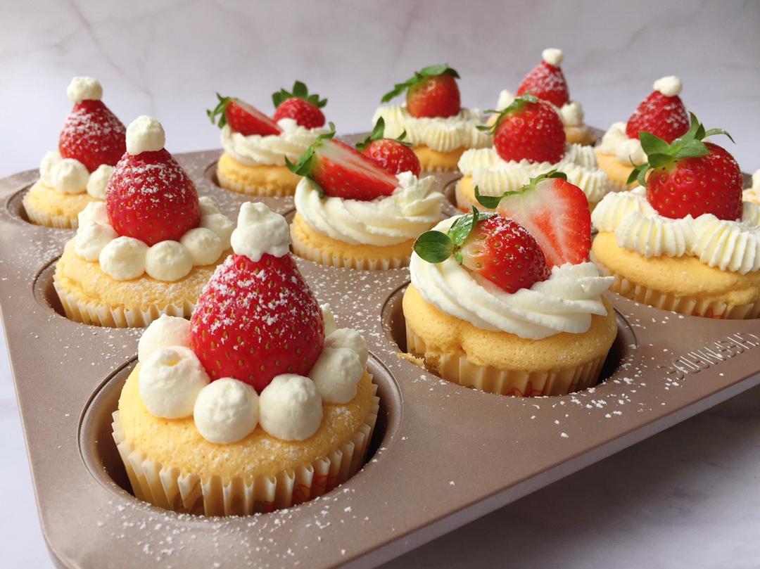 #圣诞草莓纸杯蛋糕#