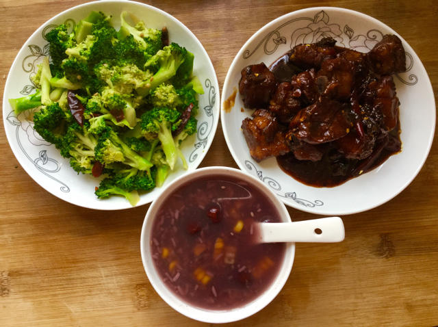 蚝油西兰花&红烧排骨&杂粮粥