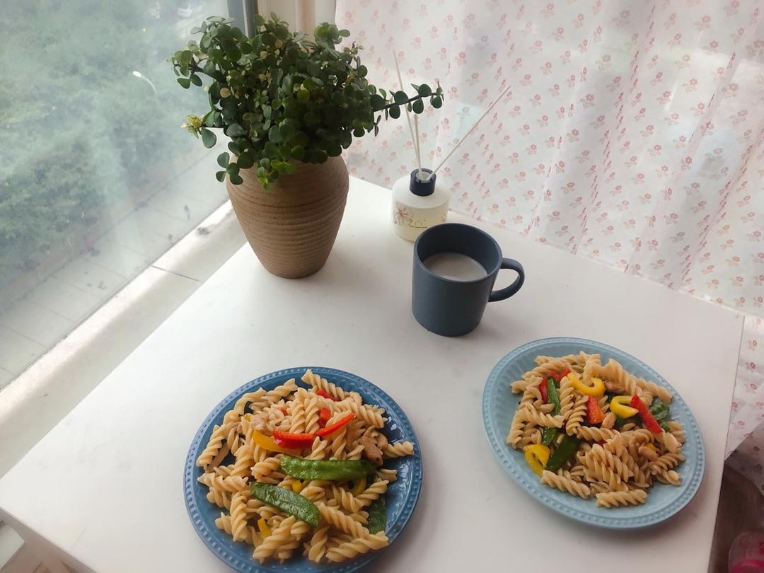 鸡胸肉彩蔬炒意面+儿童羊奶粉