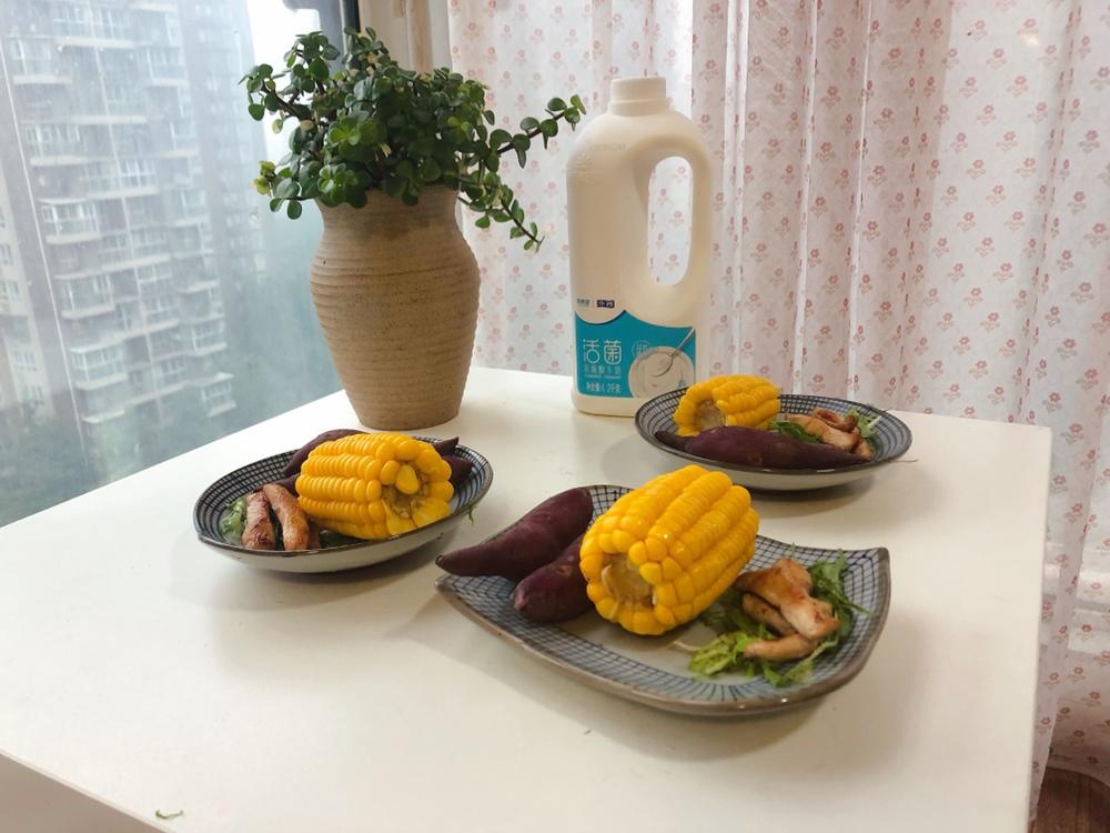 干拌饺子+火腿+小香薯+猕猴桃+酸奶