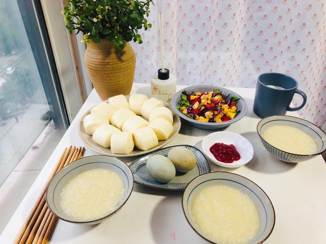 小馒头+小米粥+鸡胸肉彩椒沙拉+海鸭蛋+儿童...