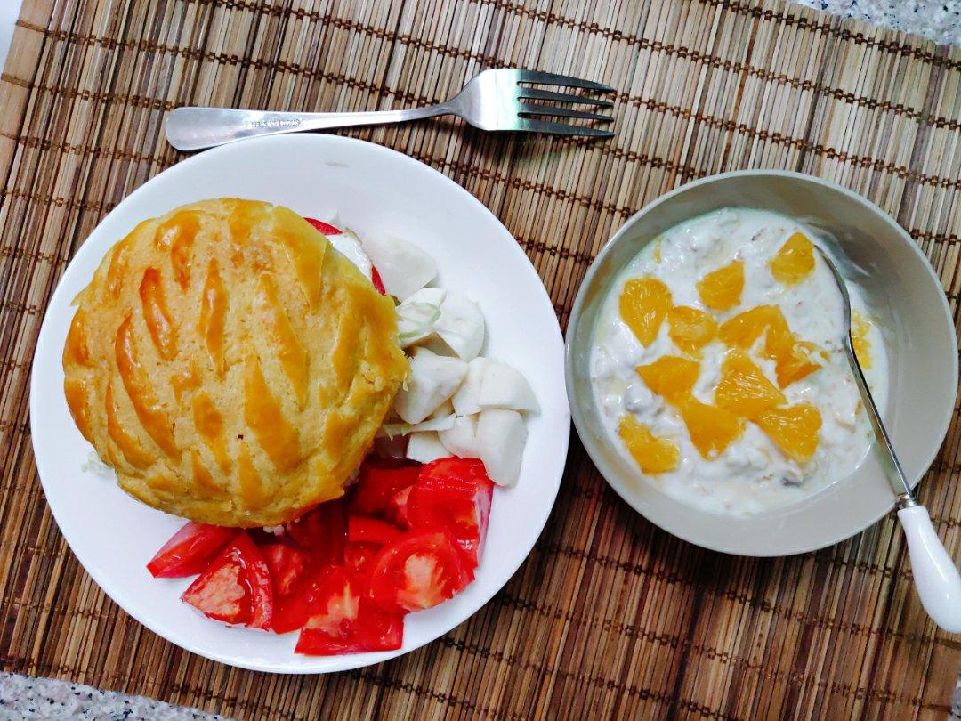 前一晚买了个菠萝包(没馅的)