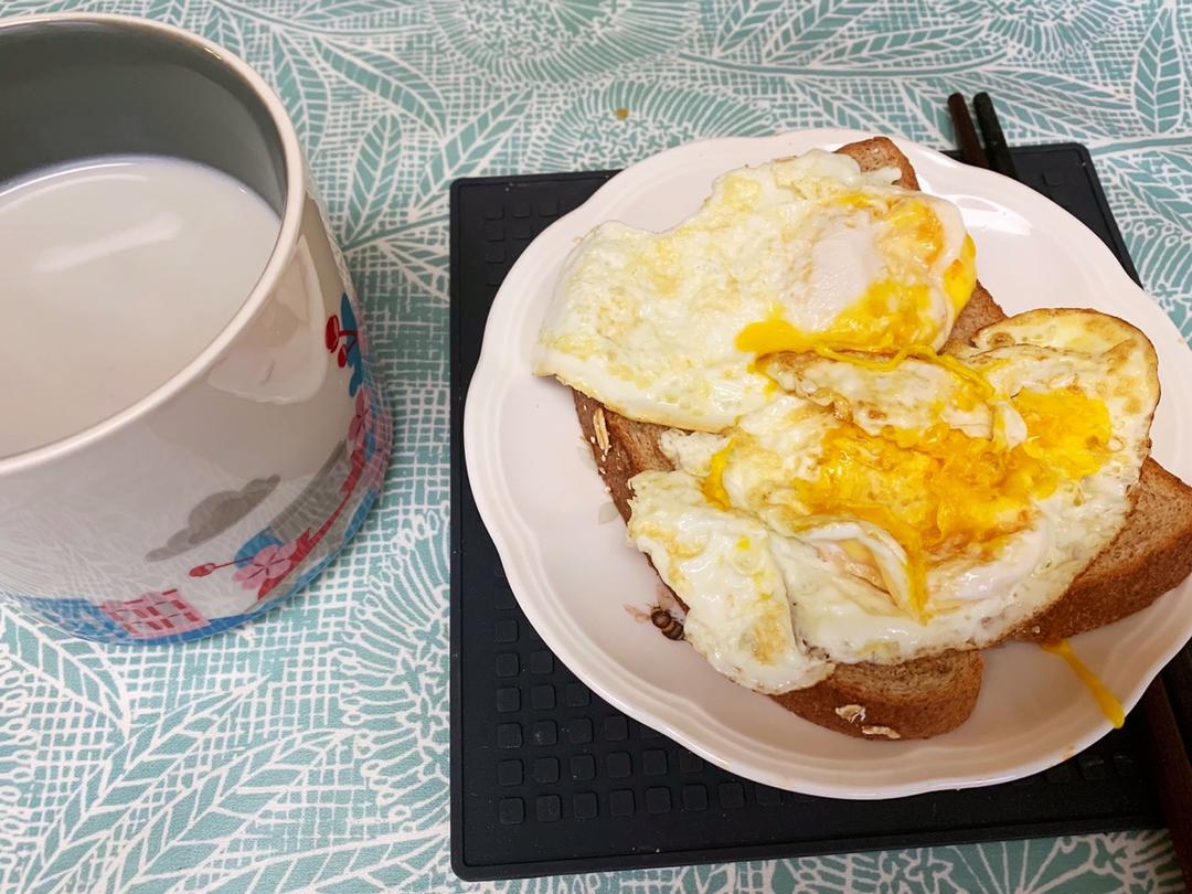 今天是没有蔬菜的早餐,两个煎蛋和全麦面包,外加豆浆一大杯!饱腹感并不强~