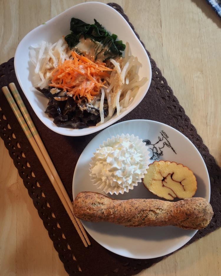 【胡麻拌菜+红茶棒&奶油&伊達巻】(前五)