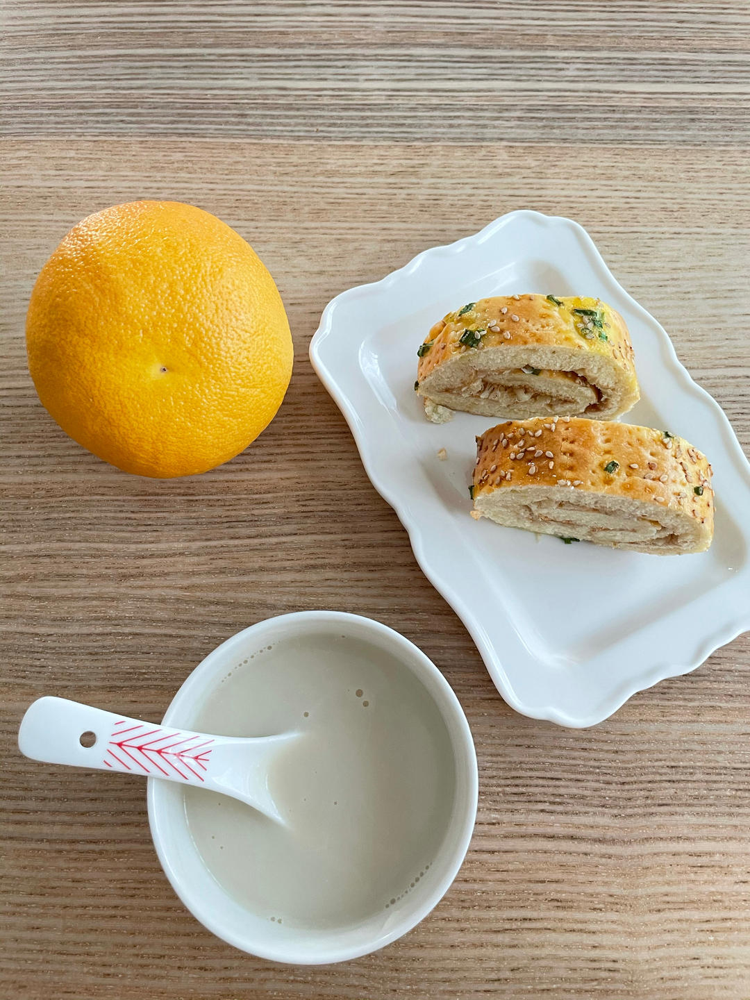 葱香面包,减了糖量,nice。