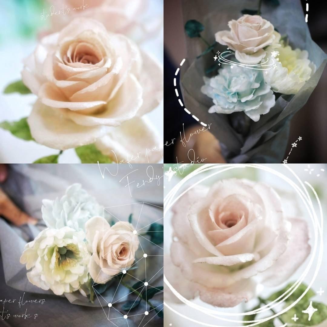 同学夏至的可以吃糯米纸/威化纸花作品。