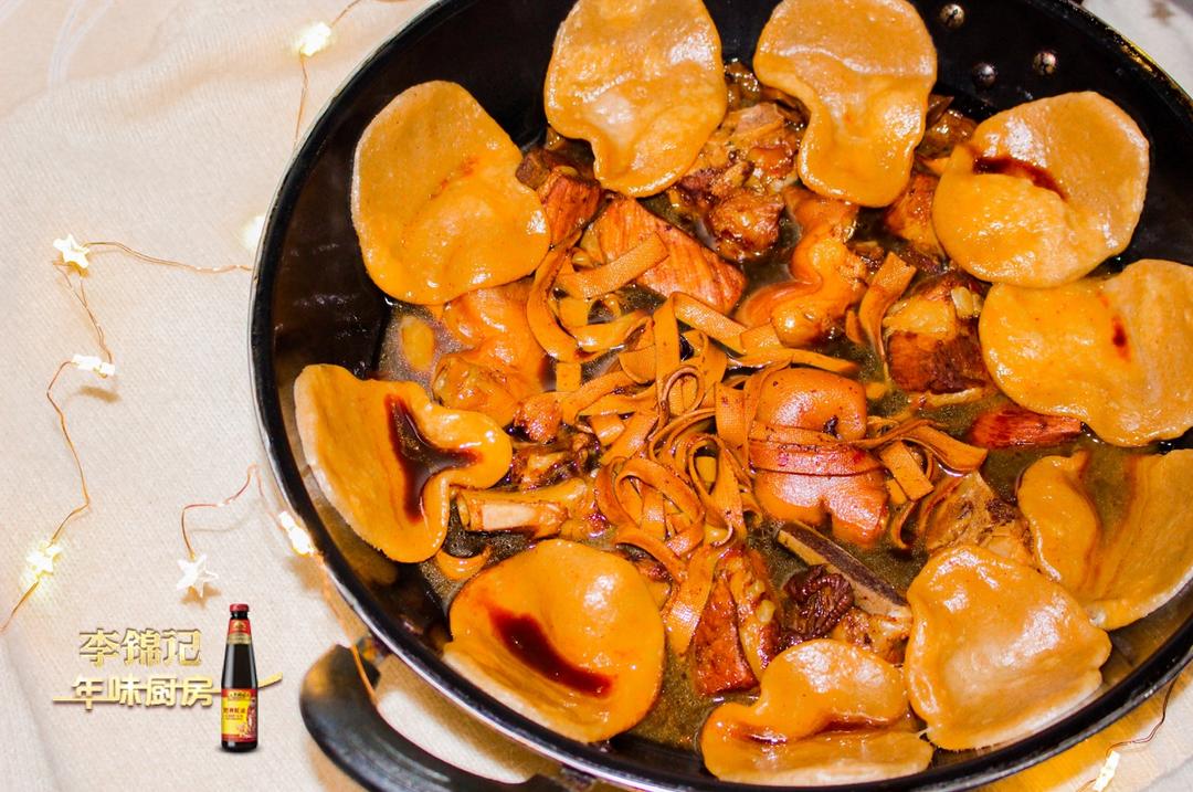 【地锅排骨猪蹄】女儿喜欢吃红通通的荤菜,全靠李锦记草菇老抽上色。嚼嚼排骨啃啃猪爪再来块贴饼子,打个饱嗝舒服死了!#晚餐•...