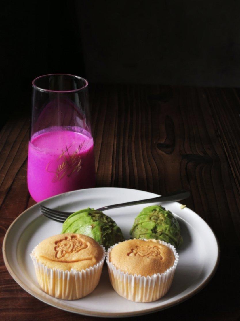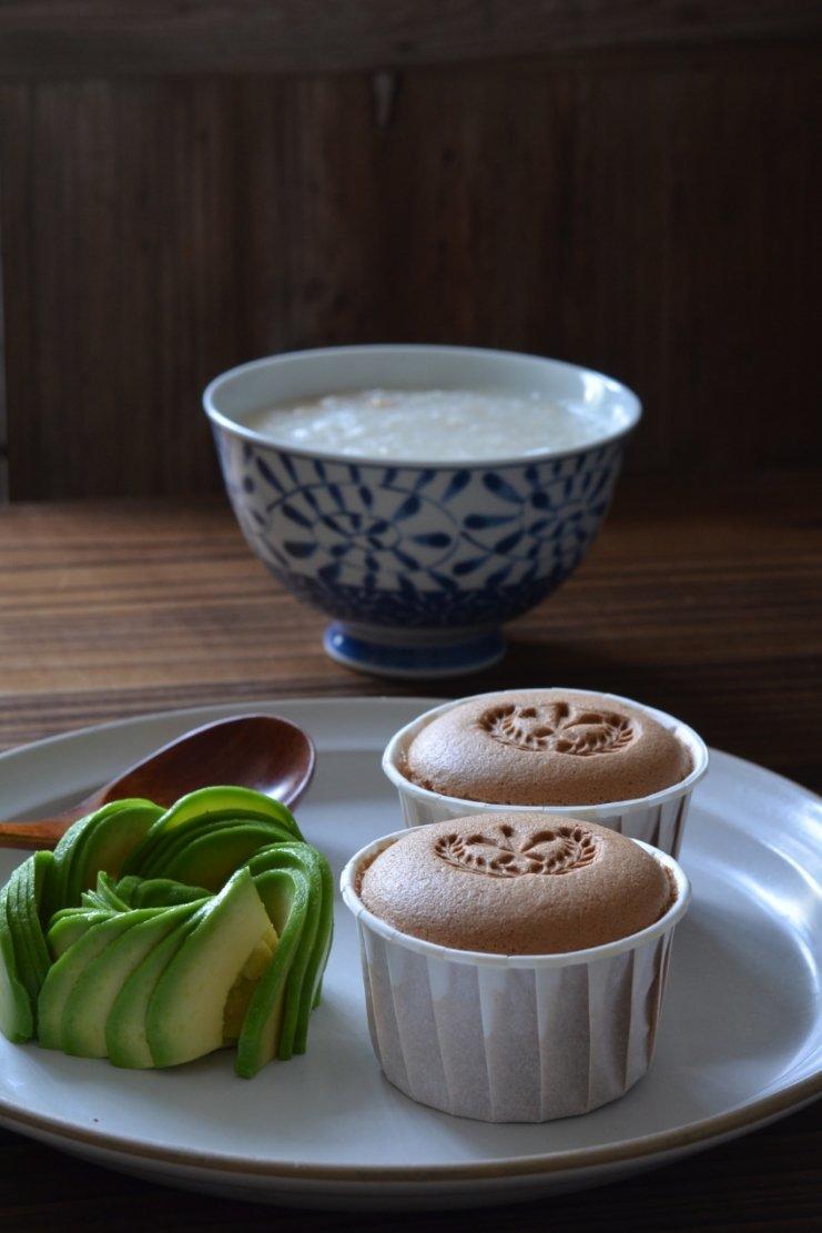 一碗瑶柱鸡肉粥,二个蛋糕,一个牛油果,真能吃。