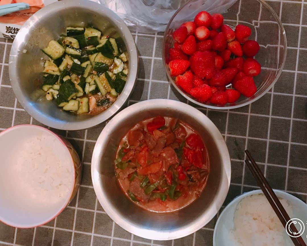 西红柿鸡蛋炒牛肉&拍黄瓜 用了四川藤椒和油泼辣子,好美味哦哈哈哈