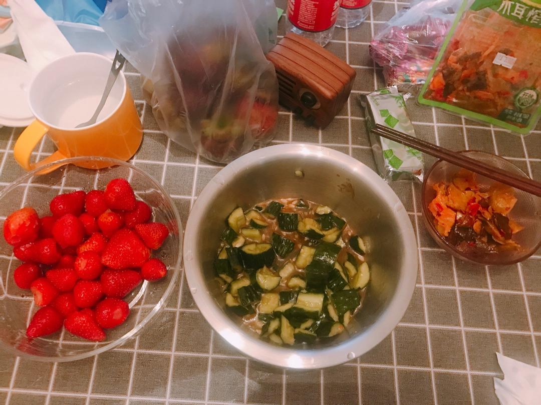今天忘记拍照了,晚上就拍黄瓜喝粥 没健身就少吃点