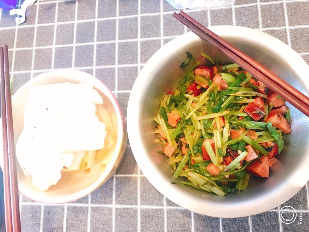 芹菜炒火腿+炸馒头片 超简单快手菜,半小时搞定