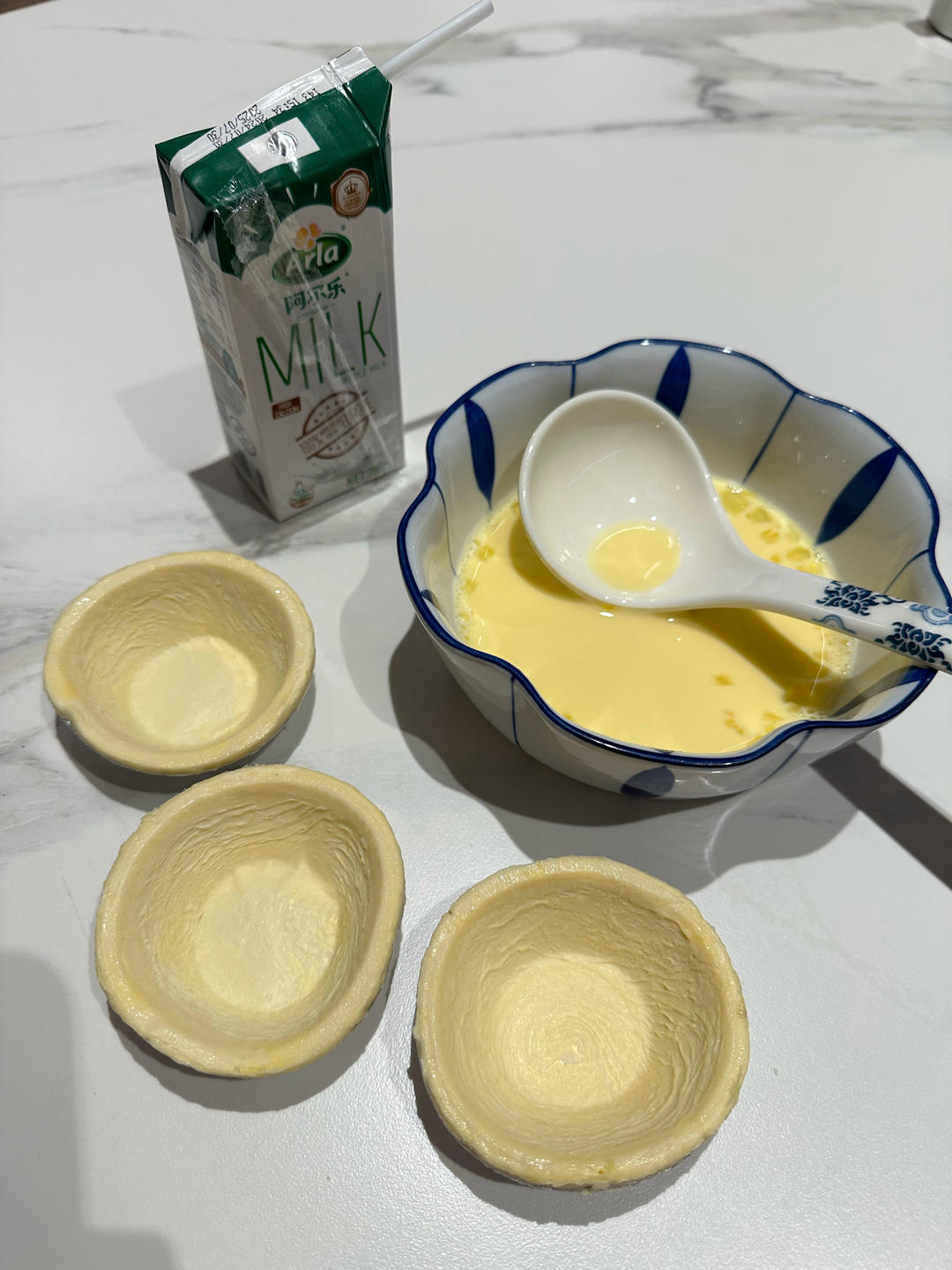买了蛋挞皮,自己做点蛋挞液来烤蛋挞吧,看起来不错。