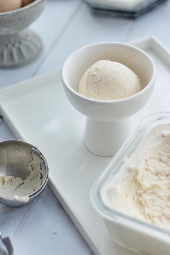 用做完泡芙剩下的奶油做了冰淇淋。味道很好。猫闻到都跳上桌了。