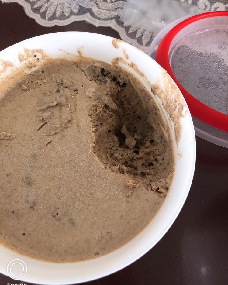 为了消耗淡奶油做了冰淇淋,可可奥利奥味的,一次成功😋