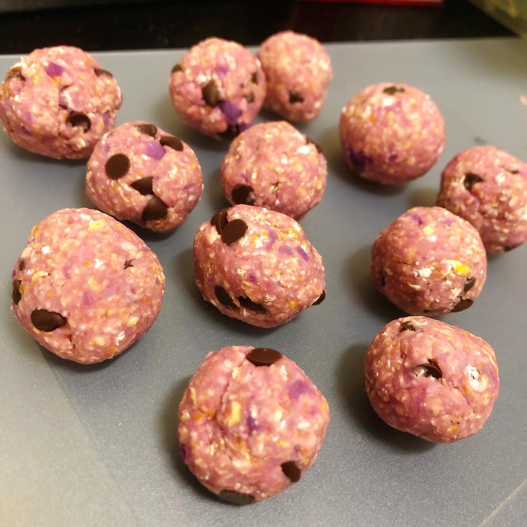 味道很好~用紫薯替代了红薯🍠浅浅的香芋色很是美腻~饼干橙香四溢~软糯的口感,就是没有烤箱呀用平底锅出来的卖相有点惨~~#...