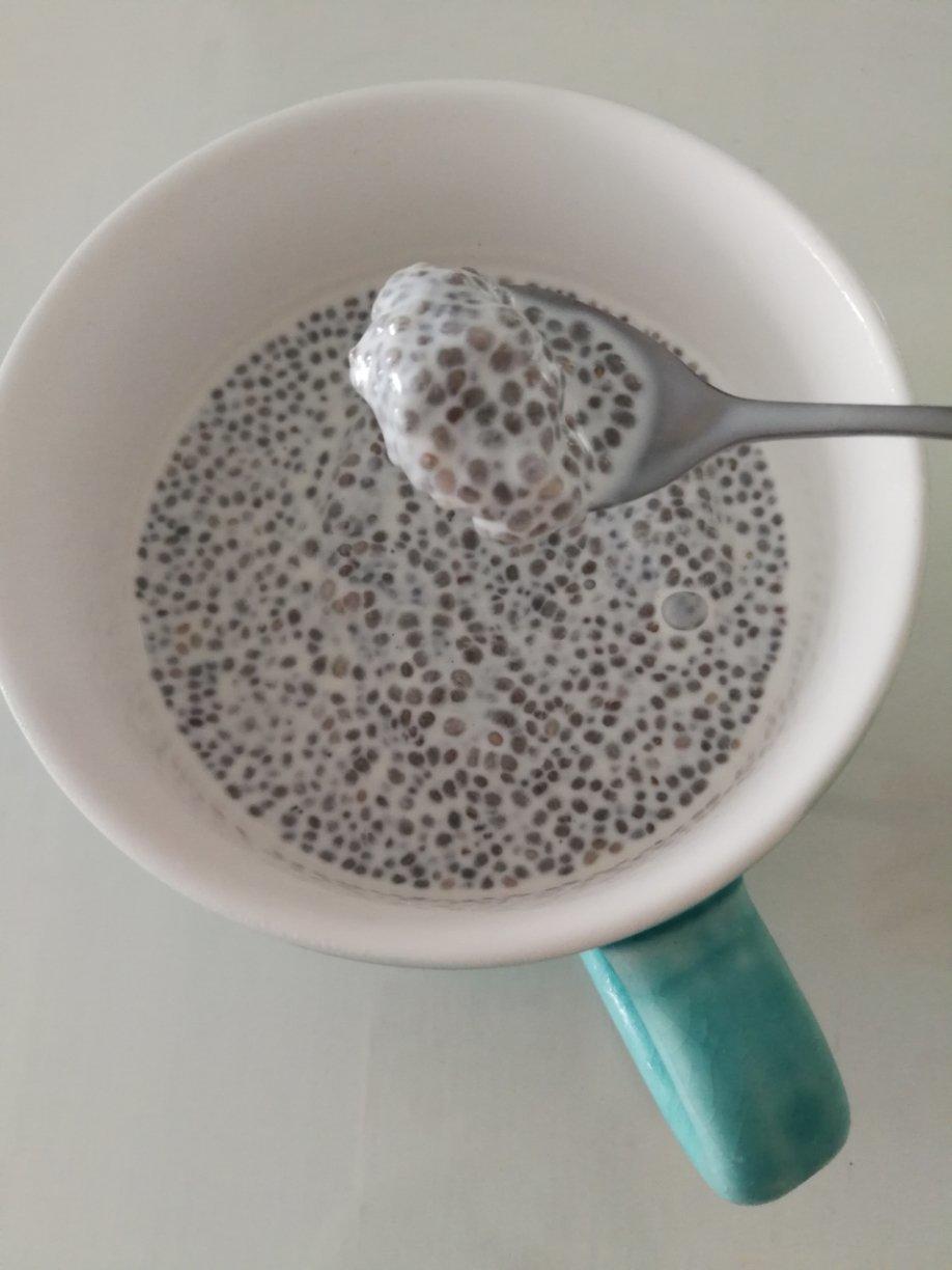 一盒牛奶250ml+40克奇亚籽+半支胶原蛋白当调味,冷藏过夜。