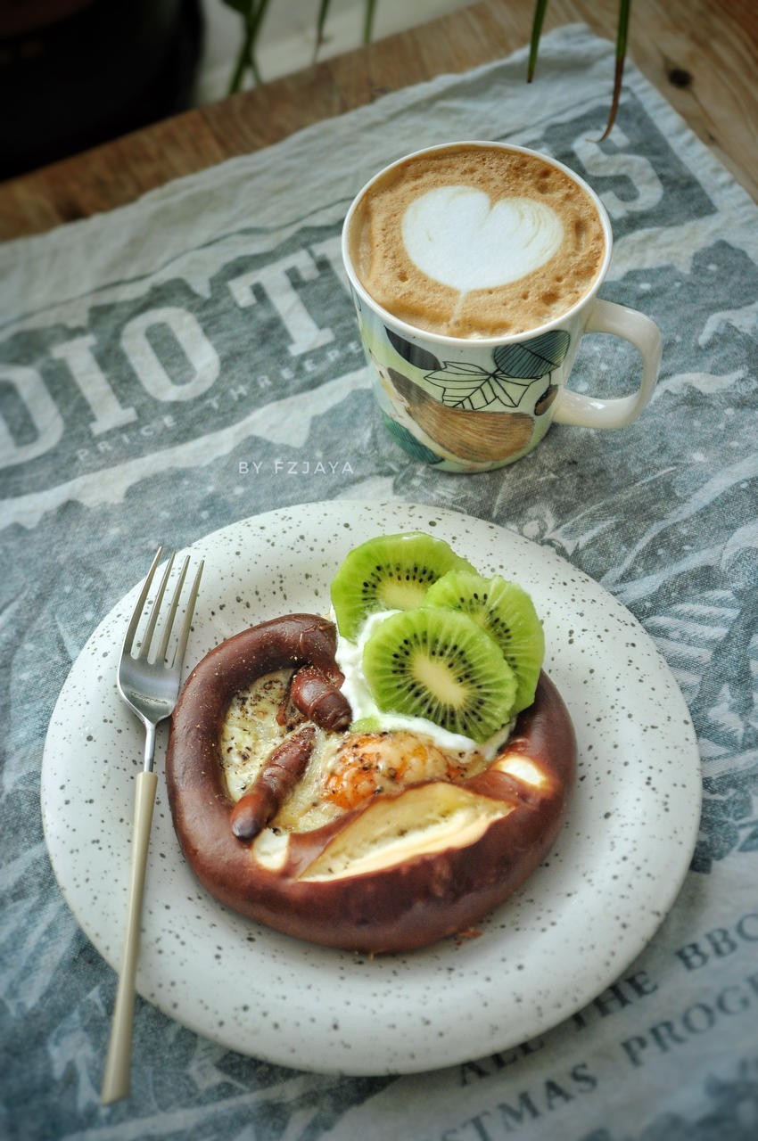假期倒计时。简单吃个hakko碱水结煎蛋,猕猴桃茅屋奶酪,桂花拿铁