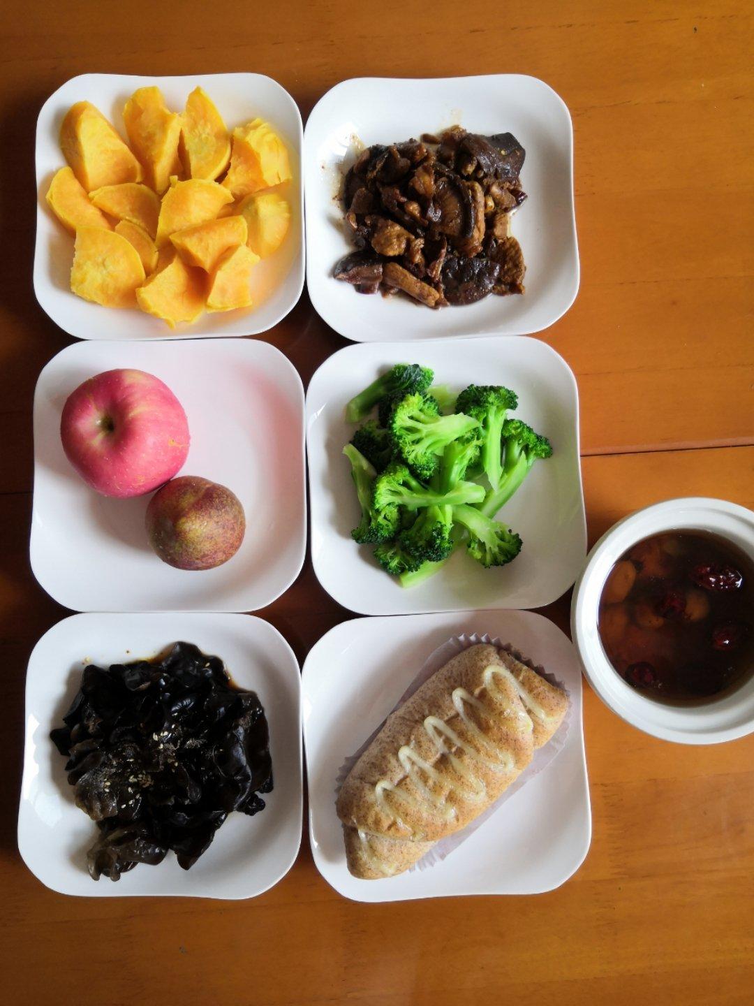 老公和女儿的:豆渣饼 素炒红薯叶 枣 坚果