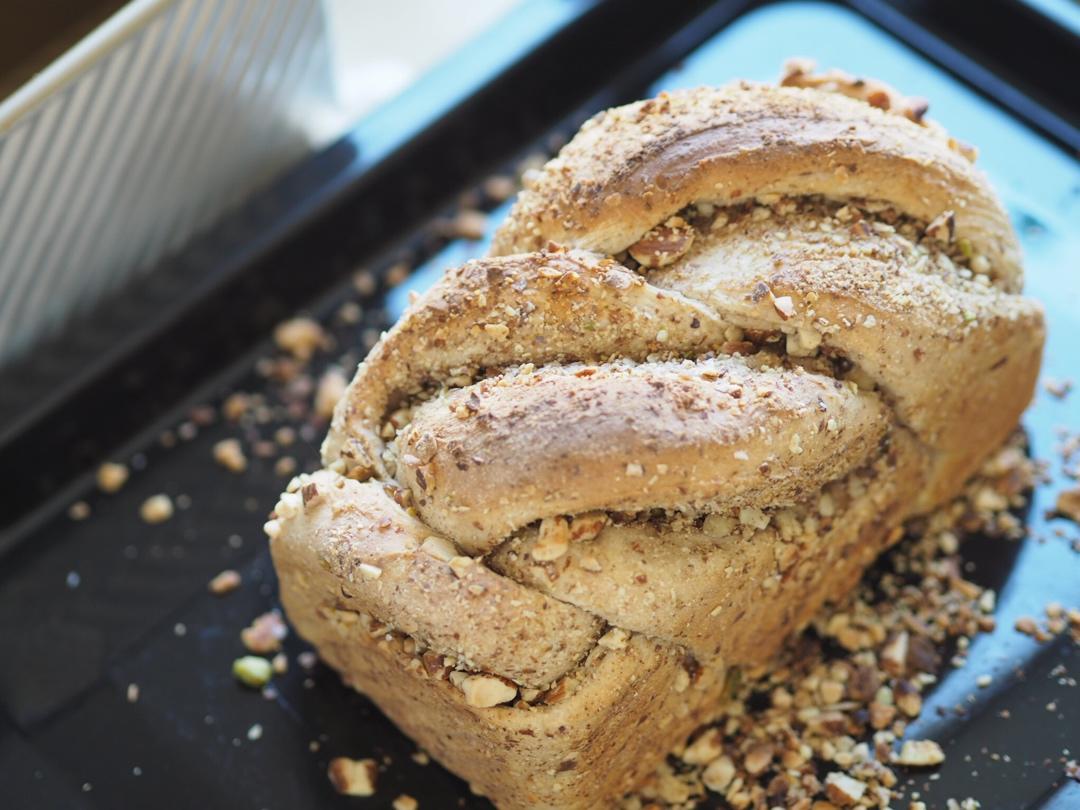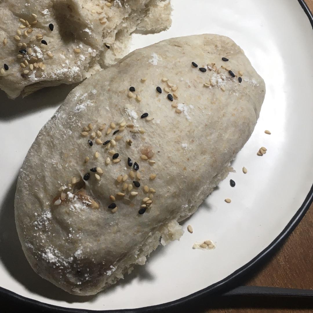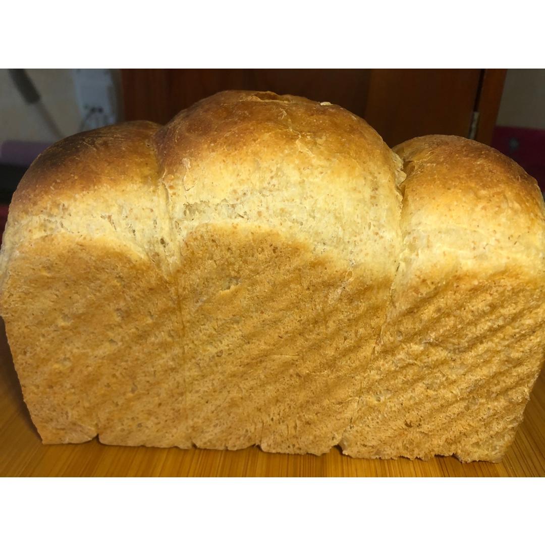 因为家里全麦面粉不够所以400g全麦换成了高筋全麦各一半,整个面包非常有分量,吃起来超有口感...