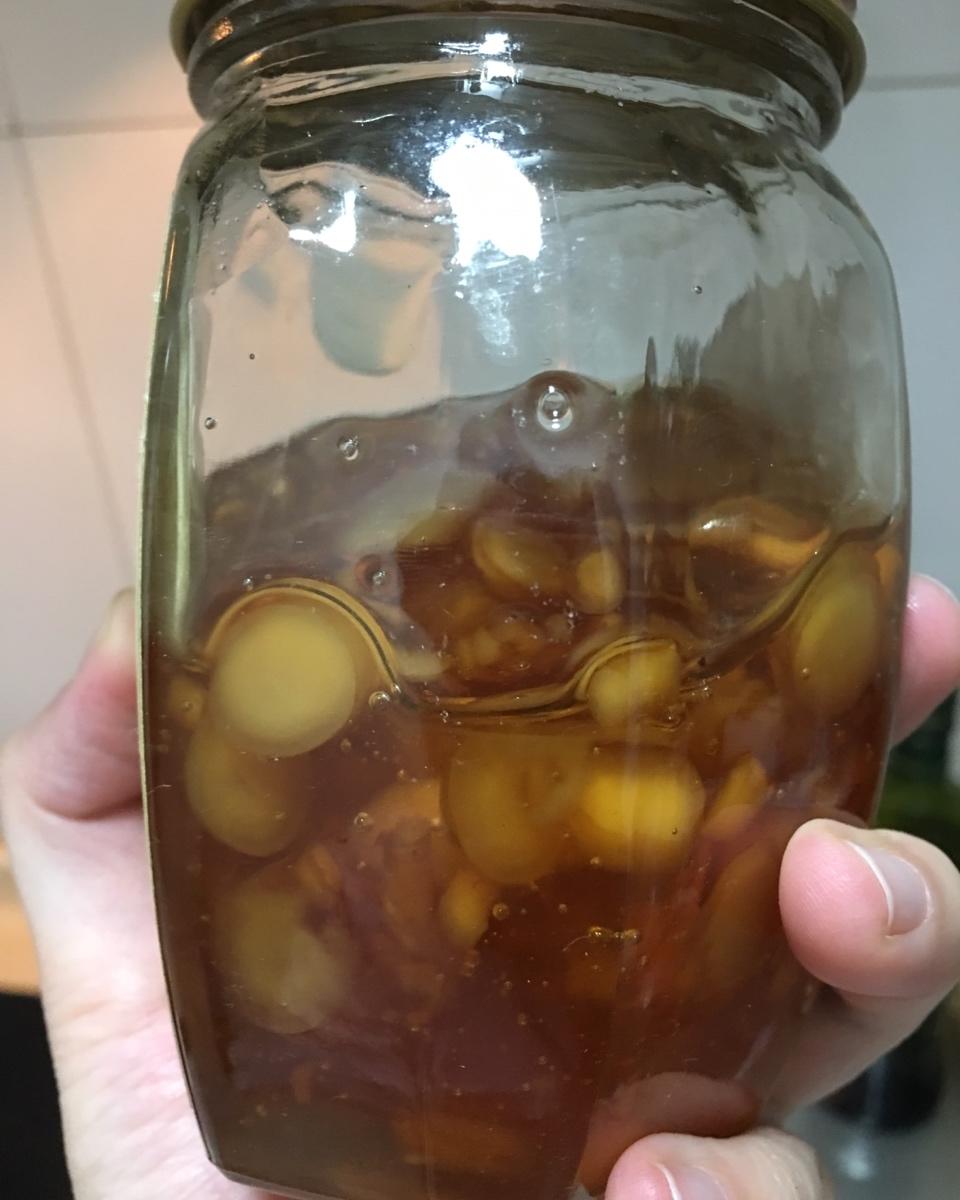 参不大,所以没有装满一瓶。蒸的时候用的国产洋槐蜜。泡的是匈牙利金合欢蜂蜜。