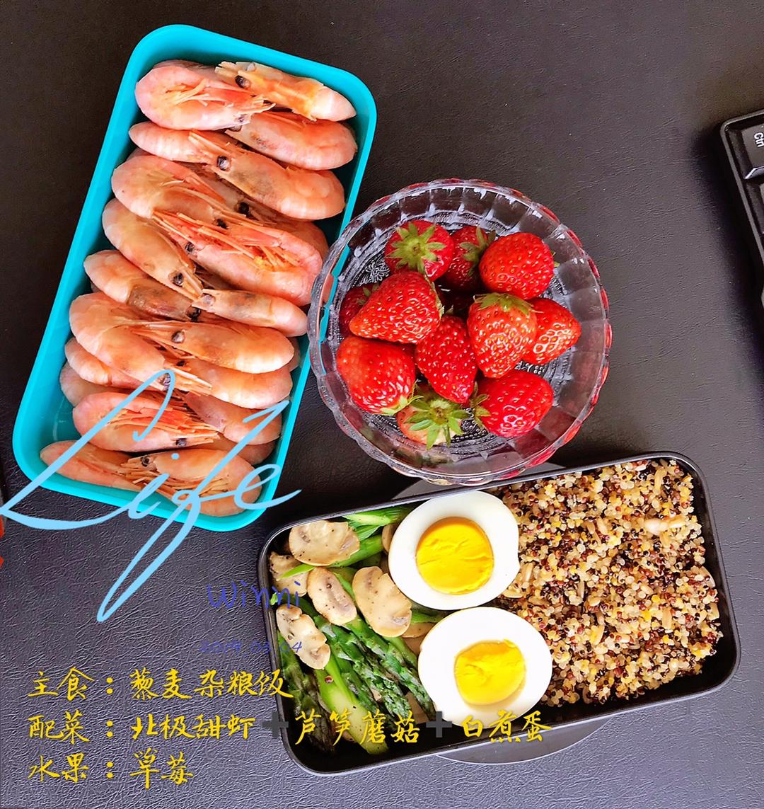 配菜:北极甜虾、芦笋蘑菇、白煮蛋