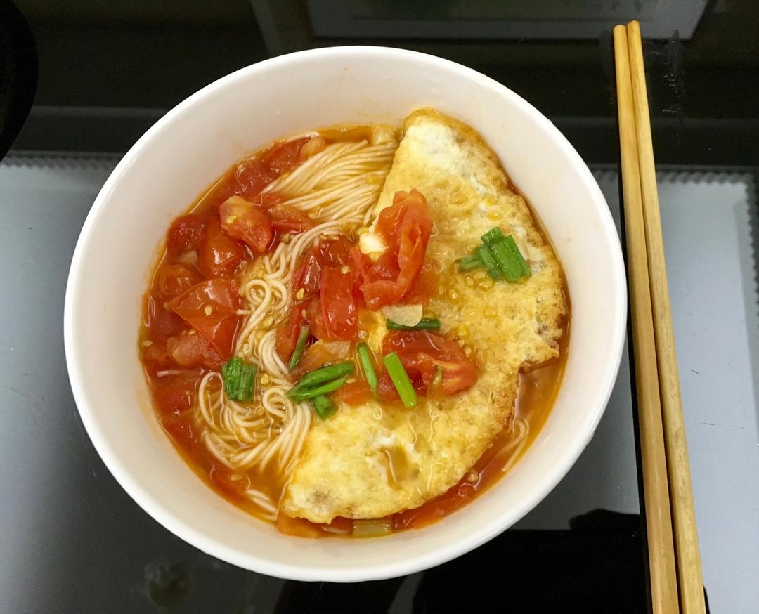 今天是超级省事的简单早餐。自己熬的葱油。没有干拌,试试汤