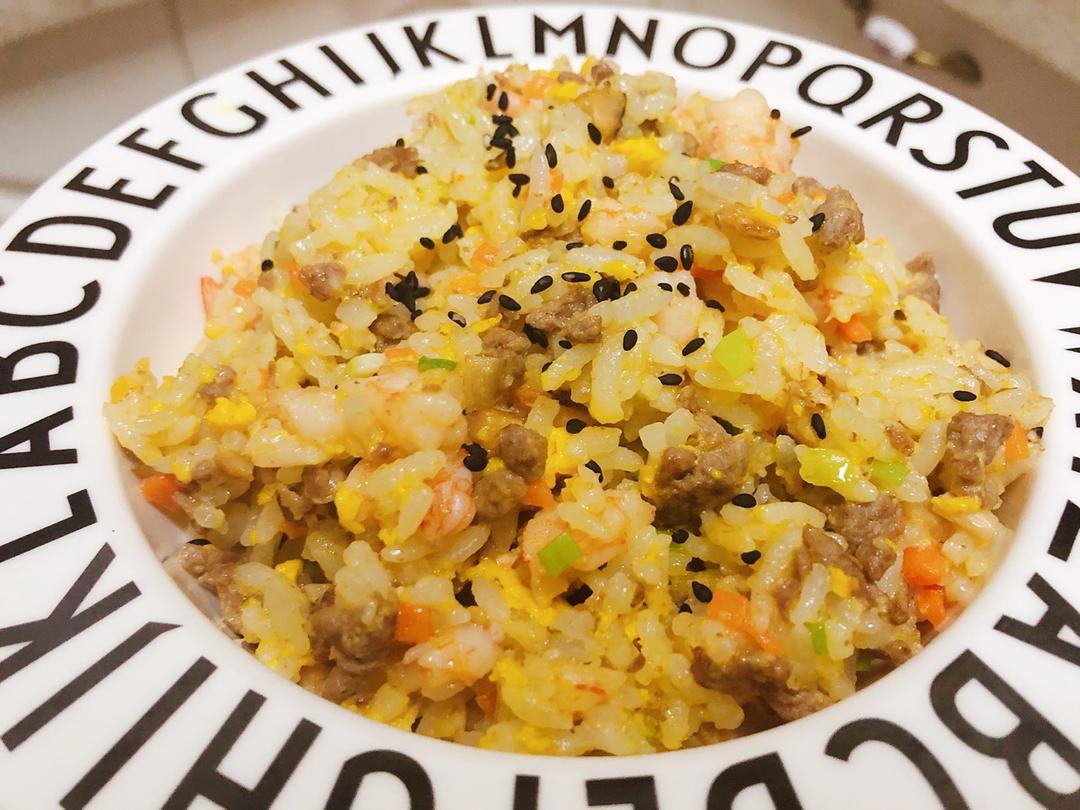 宝宝营养美味炒饭:松茸,胡萝卜,牛肉,虾仁,鸡蛋