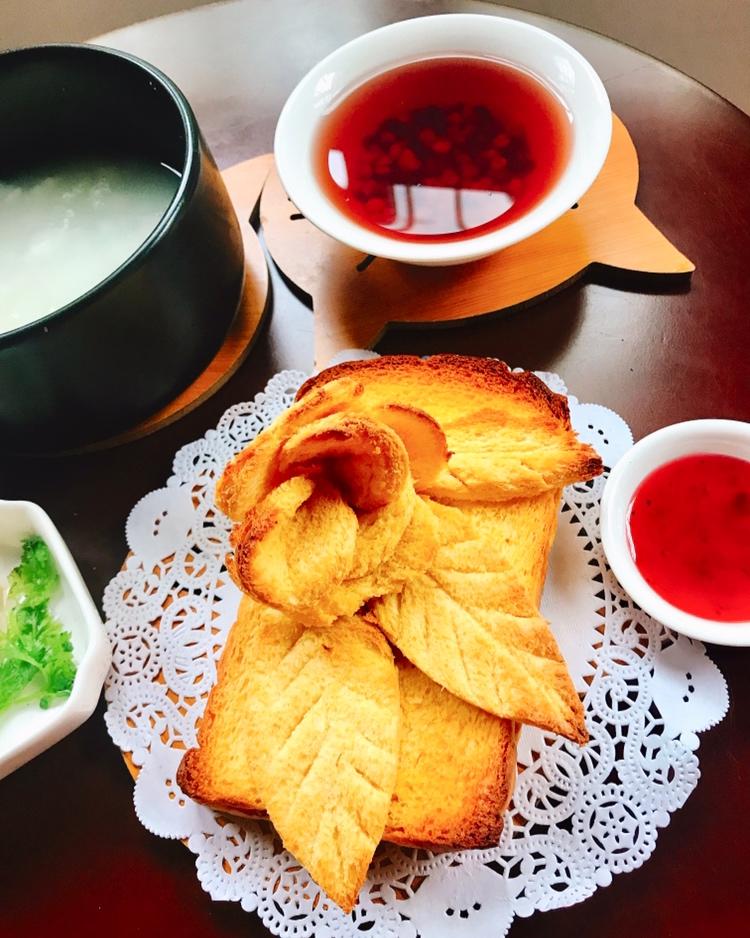 薏米赤小豆汤祛湿🥣吐司玫瑰花🌹养眼👀糙米粥腐乳填饱肚子