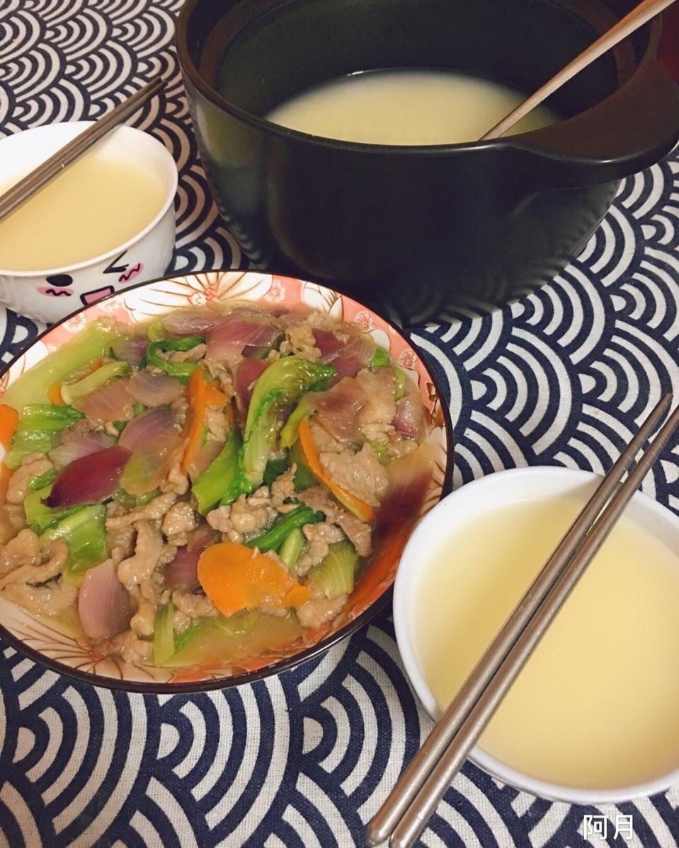 -$-早上好!6月19日,周三今天比较早[偷笑]粥+清炒黄瓜胡萝卜+蛋煎粿,美好的一天从早餐...