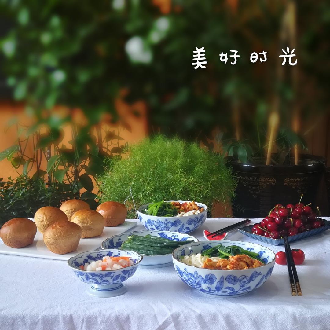 365天不重样早餐。打卤面。红糖小面包。泡菜。秋葵。樱桃。
