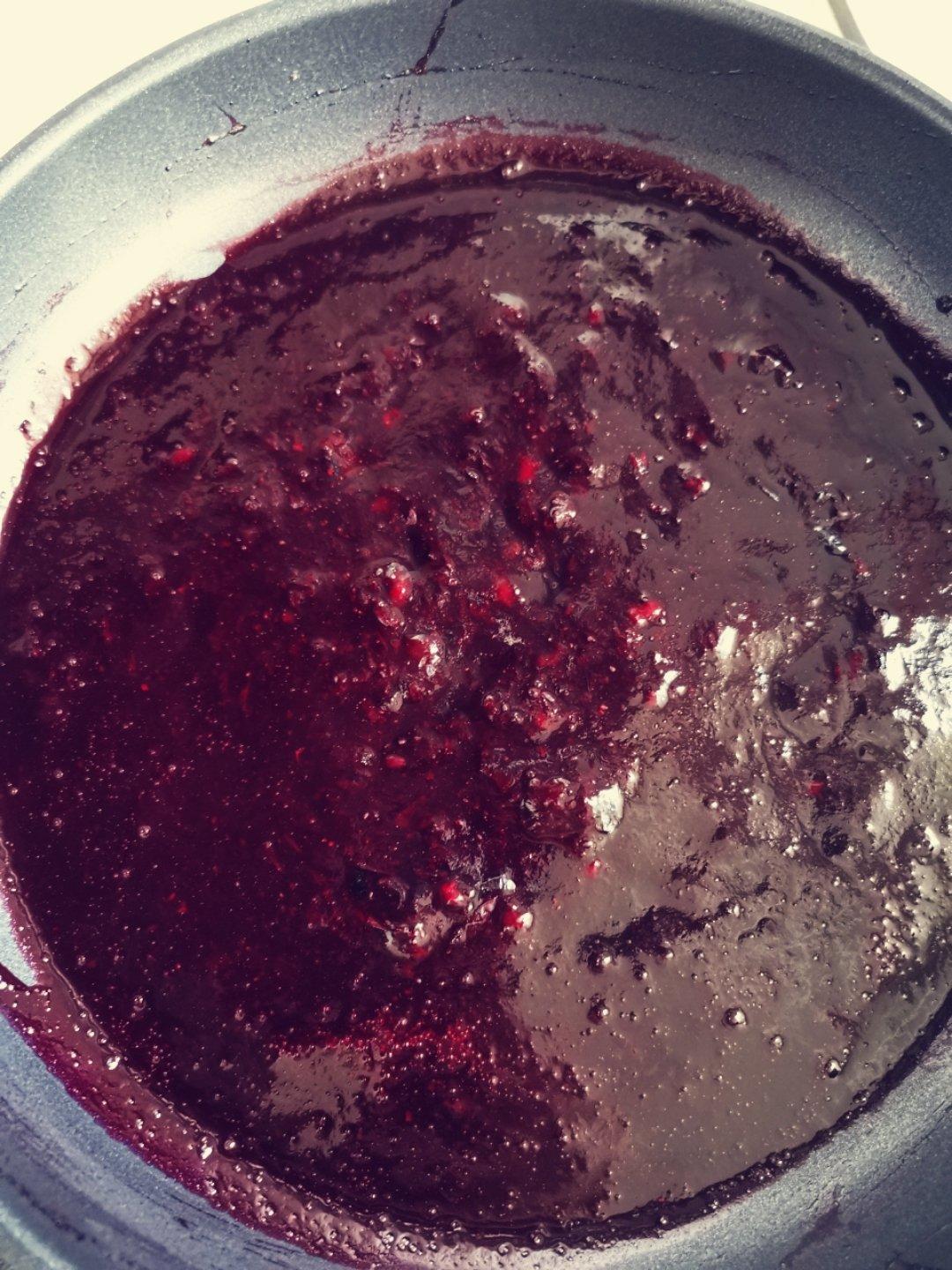加了一勺蓝莓酱,用手抓饼做的,超好吃!