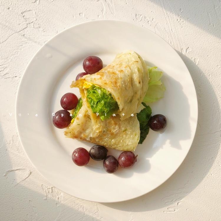 超想吃手抓饼!煎蛋夹几片生菜,加了番茄...