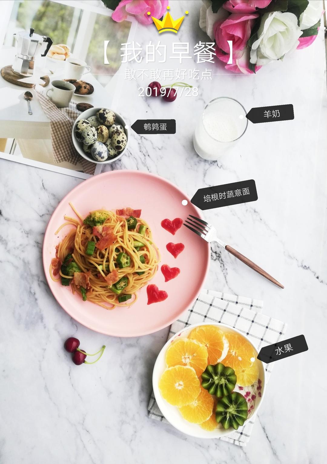 早餐打卡:培根时蔬意面~