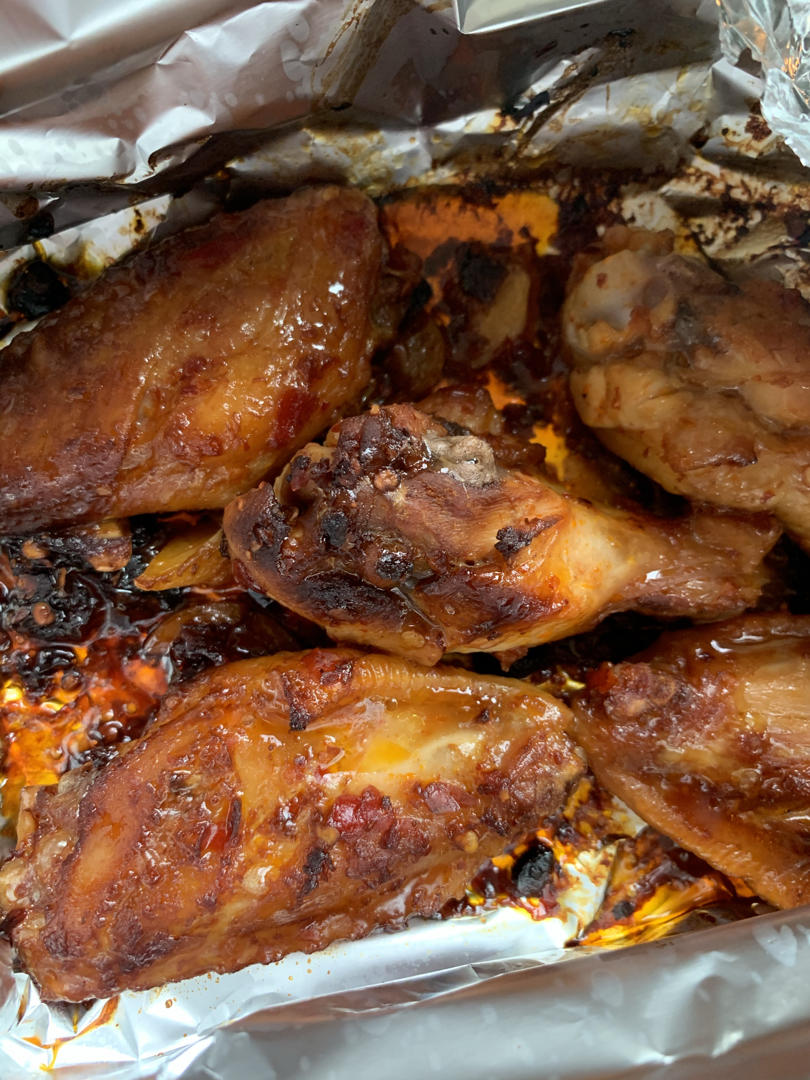#北鼎烤箱打卡# 七月烤箱美食日记6⃣️烤翅根。这是近两个月来经常会整的一道烤箱菜。鸡翅用蒜、酒、花椒油、豆瓣酱、糖、孜...