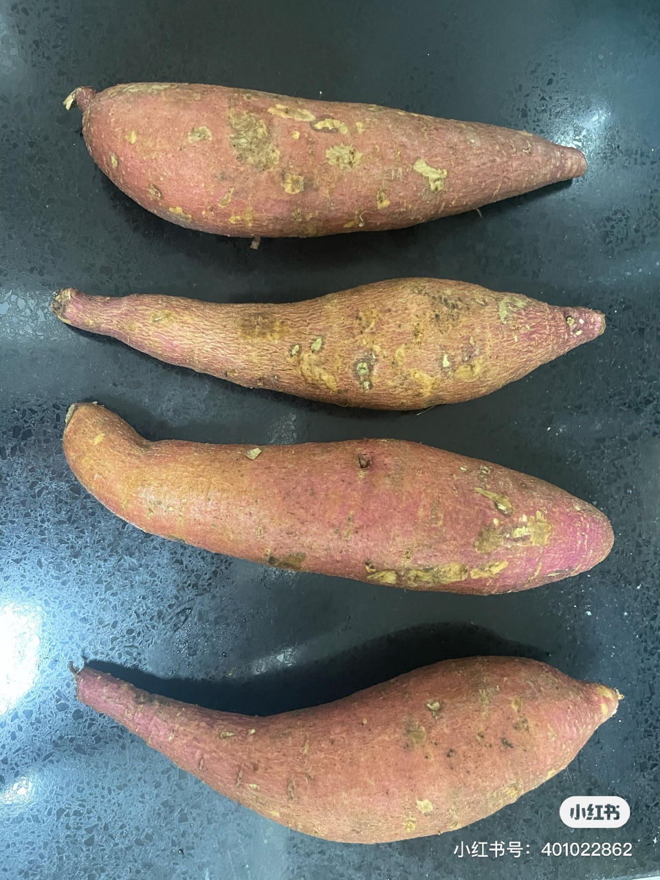 地瓜洗净,擦干水分,放在铺好锡纸的烤盘上,200度45分钟,糯糯的烤地瓜,香气溢满整个屋子。