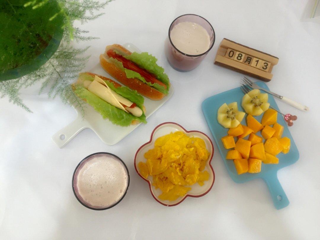 补发早餐:全麦热狗面包。